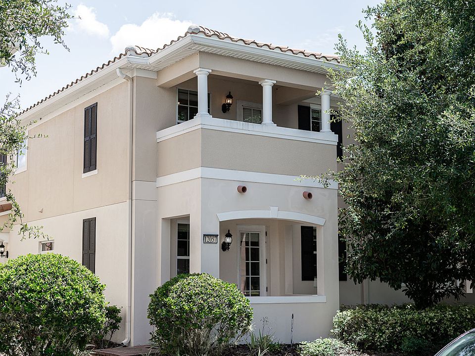 Beautiful 3/3 townhouse w/ 2 car garage in the gated and highly sought after Village Walk of Lake Nona. This property features newer interior repaint, ceramic tile flooring w/ new laminate vinyl tile upstairs and a downstairs suite w/ an entrance out to a covered patio-perfect as a guest suite or office. Nicely-equipped kitchen w/ granite counters, plenty of cabinet space and breakfast bar. Open to the kitchen is the spacious family room which opens to the covered private rear patio/courtyard. Upstairs, you will find a spacious master suite w/ walk-in closet, balcony w/ a great view, and a master bath w/ double vanity. There is also another bedroom and guest bath. Large outdoor patio/courtyard between the garage and rear of the building, a 2-car garage, plenty of closet space throughout, washer/dryer hookups w/ washer dryer available as a convenience and much, much more. Included in the rent is lawn maintenance, basic cable t.v., and internet. The Village Walk at Lake Nona community features a gated entrance, state-of-the-art fitness center, community gas station, heated resort-style pool, tennis pavilion with 6 lighted tennis courts, a lighted basketball court, tot lot, lakeside gazebo, and much more. The Village Walk at Lake Nona Community is located just off Narcoosee Road in Lake Nona and is 5 minutes from Medical City, and 2 minutes from SR 417 (Greenway) offering quick access to MCO (Orlando International Airport), SR 528 (Beachline), local shopping, dining establishments and schools. Pet friendly so bring your fur baby, dog up to 25lbs with non refundable pet fee and pet screening application, breed and age restrictions apply. First month's rent and security deposit (equivalent to first month's rent) required. $75 application/screening fee for each person and tenant is responsible for any other fees required by HOA in the community, such as application fees or gate/amenity access cards. Call Central Florida Real Estate Management today to schedule a showing as this property will not last long.