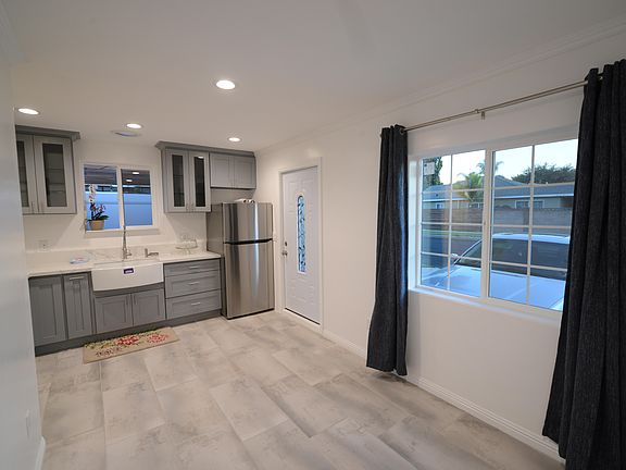 Welcome to your new home! This brand new one bedroom apartment offers the perfect combination of style, comfort, and functionality. Abundant natural light with large living room and kitchen window in addition to a skylight . Modern kitchen is equipped with sleek stainless steel appliances, quartz countertop and plenty of storage. Brand new LG refrigerator included. Designer bathroom features elegant fixtures and modern aesthetic. Bedroom features a cozy, and serene area with ample closet space. Additionally, a beautiful French door in the bedroom provides you access to a stunning paved patio with mature orange and avocado trees. This space is perfect for gardening, entertaining or just a personal outdoor space for you and your guests. Private entry to backyard located next to main entrance. Washer and dryer hookups, AC and Heating Unit, and ceiling fan in bedroom. This apartment is located in a very quiet and residential neighborhood close to 605fwy and 105fwy, central to schools, parks and grocery stores. Renter pays for gas and electric bill. Owner will pay for water, sewage and trash.
