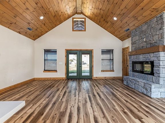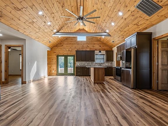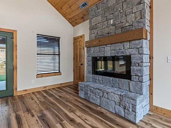 Just completed! Welcome to your stunning new cabin home, boasting custom finishes .HOME IS 1 YEAR OLD. This bright and spacious three-bedroom, two-bath split-floor plan home is situated on a quiet 1-acre lot - inside to grand 15-foot high ceilings in the expansive living area, complete with an electric log fireplace. The luxury vinyl plank flooring adds a touch of elegance and durability, while the ceramic tile in the wet spaces provides functionality and style. Enjoy the great outdoors with two outdoor living spaces - a covered front porch and a back deck. There are no POA restrictions, and the two-car garage with side entry and oversized driveway offers ample parking and storage space. This new build is rare with its prime location, high-end finishes, and unbeatable value. Don't miss your opportunity to call this beautiful cabin home your own. Move-in ready! Features tall pitched ceilings in the main bedroom.