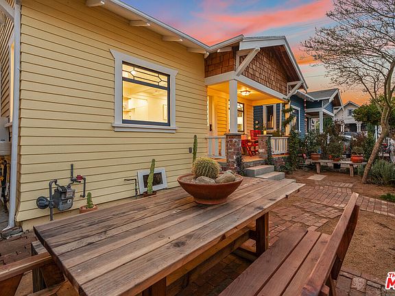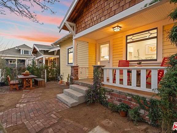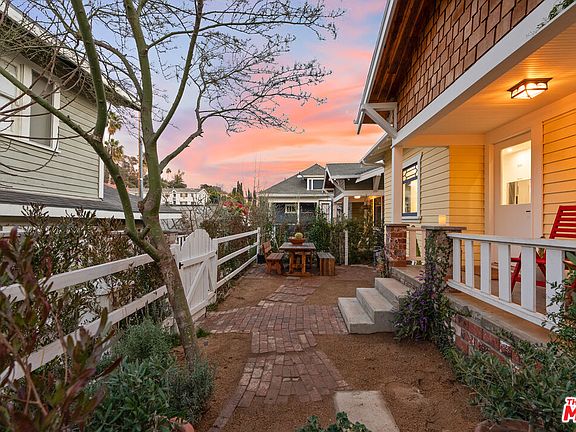 Welcome to Bungalow Row; extensively renovated 2 bedrooms, 1 bath Craftsman home, dating back to 1914, in the heart of Echo Park. Situated within the storied Angelino Heights HPOZ, this exclusive TIC community features four standalone homes, tucked behind a charming white picket fence. As you enter through a private gate, you'll be greeted by a freshly painted facade, and a large private patio dressed by beautifully appointed landscaping. This home seamlessly blends vintage charm with modern conveniences, showcased in an open-concept layout bathed in natural light that highlights the new hardwood floors. The dining area and kitchen, with board and batten wainscot, features butcher block countertops, floating wood shelves, dreamy plaster backsplash, a convenient pot filler, and new stainless-steel appliances. The adjacent living room has coffered ceilings and vintage windows that overlook the front patio. There are 2 bedrooms that share a new full bath. Upgrades include a tankless water heater, new mini split HVAC, stack laundry closet, brass cabinet and door hardware, new lighting throughout, new pathway lighting and professional landscaping. This home offers an easy commute to DTLA while blocks away from local hot spots like Echo Park Lake, the Farmers' Market, Cookbook, Donna's, Le Fe, Quarter Sheets Pizza, Bar Flores, Little Joy, grocery stores and more. Don't miss your chance to reside in one of the most coveted historic neighborhoods on the Eastside.