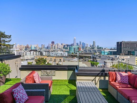 HUGE PRICE REDUCTION! Breathtaking views abound in this unique home in A+ location on Potrero Hill! The living space is spread across four levels, providing nicely separated zones for residents to live and work or guest quarters and/or bring in income from the lower levels. Main entryway leads to upper two levels that include master w/ensuite bath w/jetted tub w/dwtwn. views & walk-out deck, walk-in closet, open-liv/din. area, 1/2 bath, kitchen w/high end stainless steel appliances. Upper lvl. is ideal for work space/liv. with built-in shelves and desk, fireplace that leads to panoramic roof deck w/majestic views of SF, Bay/Bridge. Spiral staircase leads to viewing area w/sweeping views. Off entry level is the third floor that has bdrm. w/ensuite bath, liv/din area +kitchenette. On the fourth level down is a garden apt. w/bdrm, bath, & kitchenette leading to private deck & amazing garden paradise. Garage has prkg. for 1 cr. & washer/dryer. This one-of-kind home!