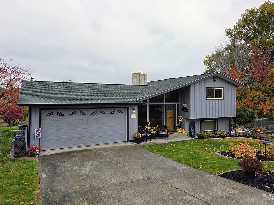 Beautiful home with streamlined, functional design and unique architectural features on two landscaped lots. 3 bed, 2 bath quad-level with large windows, solid-surface flooring, and updated kitchen with granite counters and included appliances. Dedicated dining room, oversized second living area, and unfinished lower level for storage. Fenced, landscaped yard with playground, deck, and sprinkler system. Fresh exterior paint, 2-car garage, and room to build a shop. Move-in ready with modern updates and space to grow!