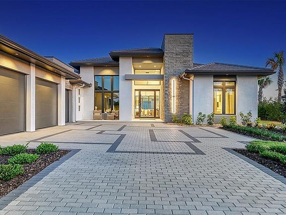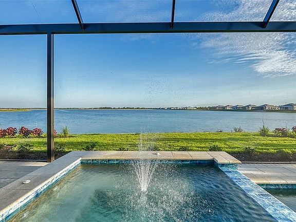 Set on a premium south-facing homesite with expansive lake views, this professionally designed and fully-furnished Atwater model by Arthur Rutenberg Homes features sophisticated interiors, an expansive outdoor living area and is available for occupancy on March 6, 2026. Constructed with AR’s upgraded Signature Level finishes, this residence features hurricane-impact windows and doors, White oak hardwood flooring, and elevated design elements throughout. The open floor plan is anchored by a professional kitchen open to the great room and dining area, where a striking stone accent wall with fireplace serves as a focal point. The kitchen is further enhanced by Thermador appliances, including double ovens, and a prep pantry complete with an additional full-size refrigerator, sink, and generous storage. Disappearing corner sliders from the dining area and a full wall of sliders from the great room create a seamless connection to the expansive outdoor living space, which includes panoramic screens, a saltwater pool and spa, custom outdoor kitchen and bar, built-in gas fire pit, pool bath, and a spacious lanai overlooking the lake. The home also offers a private office and a bonus room with its own fireplace, adding flexibility for work and relaxation. The primary suite is a serene retreat with a spa-inspired en suite, a custom-built dressing room and offers a stunning view with a wall of sliders that open to a private lanai space with its own fire pit and intimate sitting area. Additionally this model home features two en suite guest quarters including a generously sized VIP suite featuring a kitchenette, private entrance, and walk-in closet, ideal for in-law living or hosting guests with complete privacy. Located within Wild Blue in Lakewood Ranch, residents will enjoy scenic walking trails, an expansive clubhouse with restaurant, fitness center, golf simulator, sports complex, and a vibrant array of social opportunities. List price includes furniture, décor, artwork, rugs, window treatments, TVs, and electronics. To replicate this Signature Level Arthur Rutenberg home on a similar homesite today (Jan. 2026) costs $4,300,400 (without furniture included.)