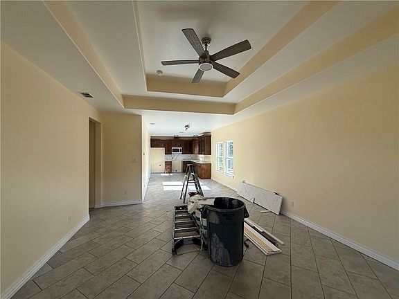 Enjoy elevated 9-foot-tall ceilings throughout the whole house with design touches like double tray in both the living room and primary bedroom, and one tray design on the other 2 bedrooms, creating an elegant and airy feel. The primary suite includes a large walk-in closet, perfect for added comfort and storage. Talk about efficiency and soundproof, this home is like an ice chest with foam insulation on all walls including attic, underneath foundation subflooring and throughout all inside walls!!!
