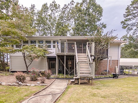and features a serene sunroom, fireplace, deck, patio and a balcony off the master