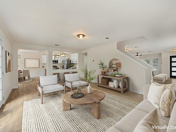 Welcome to this beautifully renovated and inviting home that offers a warm and welcoming atmosphere. This freshly painted and updated 4 bedroom and 2.5 bath home blends style and function with an open floor plan perfect for entertaining and everyday living. Three separate living areas give you the flexibility to create the spaces that fit your lifestyle, whether that's a cozy family room, a game room, home office or coffee/morning room. The heart of the home shines with all new stainless style appliances including refrigerator, sleek quartz countertops, lighting, cabinetry, island and eat in breakfast area. Never lived on luxury vinyl plank flooring throughout which is designed to hold up to real life. Upstairs you will find the spacious primary/ensuite with new quartz counters/dual sinks, toilets, surround bath tile and large walk in closet. Three secondary rooms, flex space and bathroom finish out the second floor. New blinds throughout the house. Outside, an extended patio and generous backyard provide a space to bring ideas and make it your own! Leave the french doors open for indoor/outdoor entertaining! New sod in the front yard with mature trees and new front door provide attractive curb appeal. This home is move-in ready, stylishly updated and waiting for its next chapter - you!