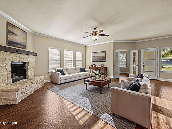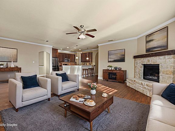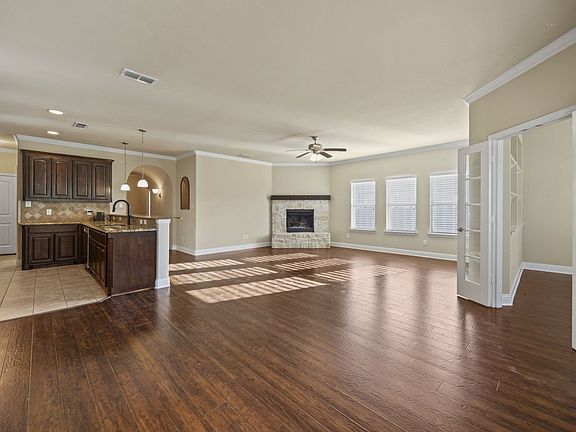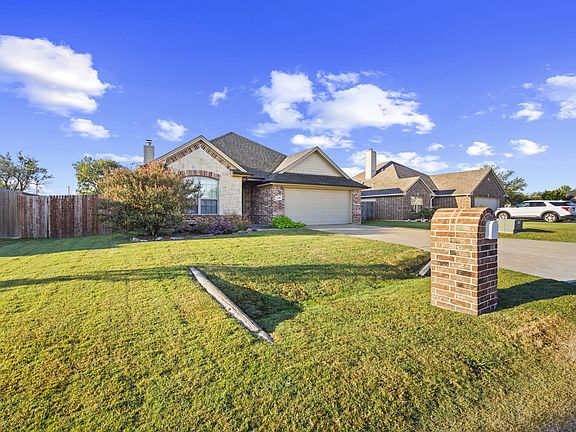 This 3 Bed 2 Bath home sits on a huge backyard lot- perfect for gatherings, play or future outdoor projects. Inside, enjoy an open lay out with a wood-burning fireplace and a kitchen featuring granite counters and a Bosch dishwasher. The private office makes working from home easy, while the large primary suite offers a window seat with backyard views, walk-in closets, and dual linen storage. Two additional bedrooms share a full bath, each with its own linen closet. Located in Tioga ISD with a brand new high school nearby, this home blends comfort, functionality and a backyard you'll love.