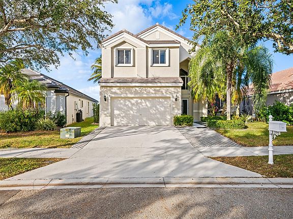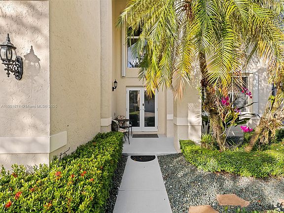 Welcome to this beautifully maintained and thoughtfully updated home, showcasing true pride of ownership. With over 3,400 total sqft, this spacious 5-bed, 3.5-bath residence offers a formal living and dining room, plus a separate family room—all with expansive lake views.The updated kitchen features 42” cherry wood cabinets, granite counters, a Sub-Zero fridge, and KitchenAid appliances, perfectly positioned to overlook the serene backyard, pool, and lake.Upgrades include FULL impact windows and doors (plus accordion shutters), a brand new roof (2024), and a newer AC unit. The fully fenced backyard is an entertainer’s dream with a saltwater pool and built-in outdoor kitchen. Located in the gated community of The Falls and zoned for A++ schools—this is the home you’ve been waiting for!