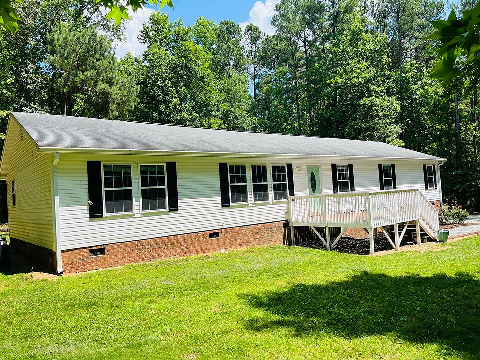 Charming 4 bedroom, 2 bathroom home located on several acres of land. Main bedroom is complete with a walk-in closet and bathroom, as well as an additional closet. Nestled at the end of a private road, this home offers the best of country living coupled with the convenience of quick access to Highway 40 and just a few minutes from many shops, stores, restaurants, and parks in downtown Mebane. Tenant pays utilities (electricity). No smoking allowed. Must gross three times the amount of rent. Maintain lawn. Any damages to the house beyond normal wear and tear would be tenant's responsibility. Will complete a background and credit check. No prior convictions allowed.