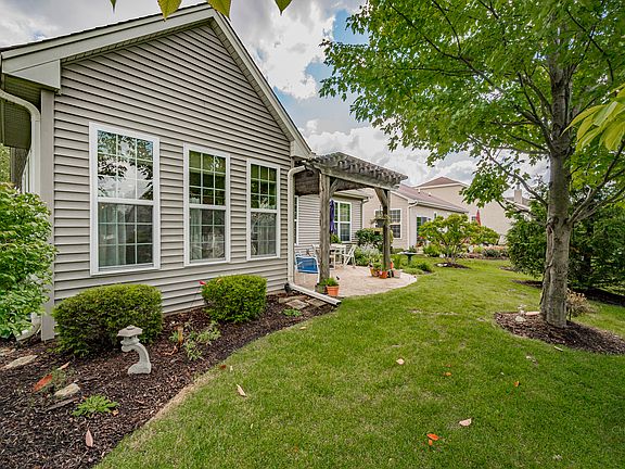 LOVELY MONTE CARLO MODEL RANCH IN OVER 55 ADULT COMMUNITY WITH CLUBHOUSE, POOL, LIBRARY,FITNESS ROOM AND MANY PLANNED SOCIAL EVENTS. ONE STORY LIVING WITH LARGE KITCHEN, 42IN MAPLE CABINETS, GRANITE COUNTERS, SEPARATE ISLAND, STAINLESS APPLIANCES,PANTRY. LARGE EATING AREA. WOOD LAMINATED FLOORS THROUHOUT . NEUTRAL CARPET IN THE BEDROOMS, 2 FULL BATHS WITH CUSTOM VANITIES, BEDROOMS HAVE WALK-IN CLOSETS AND ACCESS TO PRIVATE BATH. LARGE UTILITY ROOM INCLUDES WASHER AND DRYER. LARGE INVITING LIVING ROOM AND DINING ROOM. THE SUNROOM ADDS ADDITIONAL SPACE. THE DEN CAN BE USED AS AN OFFICE OR SITTING AREA. THE SUNROOM OPENS TO A PAVER PATIO WITH PERGOLA. PRIVATE BACK YARD. ONE LEVEL LIVING IN A GREAT AREA, CLOSE TO PARK. DON'T MISS THIS ONE!!! A GREAT AREA AND NEIGHBORHOOD!!! CLOSE TO I88 AND ALL THAT AURORA AND NAPERVILLE HAVE TO OFFER. A TRUE GEM.
