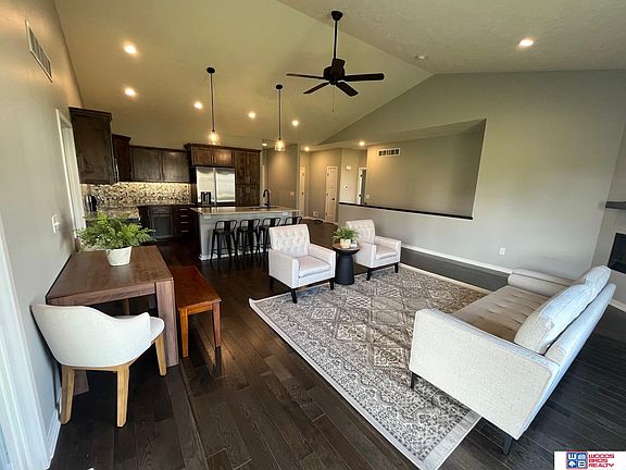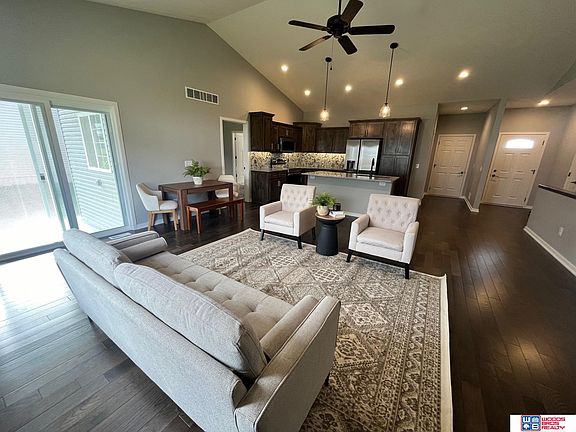 Contract Pending. Price is right on this 4 bedroom, 3 bath ranch in Hickman, NE. Granite countertops, engineered wood flooring, tile backsplash, custom Alder cabinetry, large island, and stainless appliances. 9' cathedral ceilings on first floor, electric fireplace, 1st floor laundry. Large primary bedroom with walk-in closet. Basement finish includes 4th bedroom, full bath, large family room, and plenty of storage. Finished 3-car garage with opener. Covered front porch. Fully sodded yard with sprinklers, covered patio and so much more. Some pictures are virtually staged.