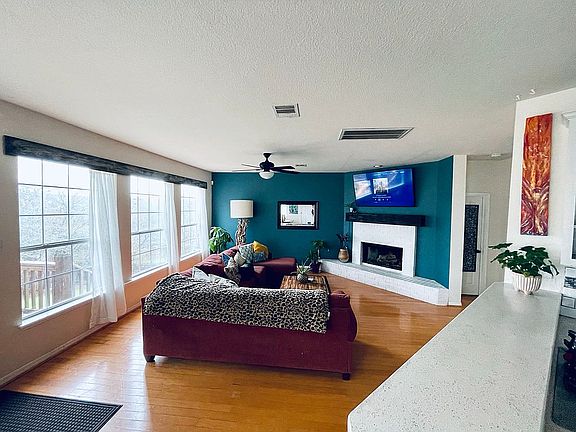 Drive-in note - the shortest/best way to access is via Marley Way off of Bee Caves Rd. You do not have to turn onto Cuernavaca although you can access the house that direction as well. Spectacular sunsets and soothing suburban spaces combine with top notch Eanes ISD schools to make this unique Lake Hills property an entertaining and easy living dream home. The red brick single family 4 bedroom/2.5 bath house is just the beginning. This private plot of Austin, TX land also provides pathways down to a separate 400 two story loft style stone studio structure (included in total sf) and boasts a wraparound .37 acre yard for enjoying Austin’s natural wonders tucked away in the luscious lake estates area of Westlake. Enter the front door to find an activity/music room adjacent to a bright dining room both complete with crown molding, coordinating handcrafted wood valances hang throughout first floor. Stainless steel appliances (+new glass range) subway tiles, soft stones, and both bar top and built in storage seating create current and creatively curated kitchen and nook areas. Wood burning fireplace with wood mantle makes for magical times inside the living room area with a wall of windows - year-round sunset and wildlife viewing. From the living areas walk out back onto the bottom of a two story deck. Take the stairs down to large grassy field and stone pathway to the loft house, or make a left towards the built in BBQ grill, fire pit, projection screen, mister system, ceiling fan/light, mini fridge and more housed under a canopy of trees inside a tailor made covered circle of family fun. Ample seating spaces and storage benches surround the outdoor entertainment area. From there you can ride the big yellow slide or take the stone steps down the beautiful natural rock wall and land in a huge, soft, grassy field perfect for pretty much everything under the sun. Plenty of open yard areas allow this property to live like a corner lot. Upstairs find a master suite with vaulted ceilings, alcove, and double doors to a relaxing bathroom area complete with jacuzzi bathtub that provides a peaceful backyard and filtered sunset view through magnificent mature oak trees. Three bedrooms Include a NW corner window sunset view bedroom with two closets and a front bedroom with floor to ceiling built-ins and a quite decent sunset view of it’s own. Centering the bedrooms is a roomy well lit family space complete with built in cabinets as well as second floor balcony access where you’ll enjoy treetop views as far as the eye can see. This home sits on arguably the most desirable spot anywhere in this section of Lake Hills. Without a doubt this precious spot on Mayan Way has the best sunset in The Bluffs. Loft house has projection screen/projector/speakers built into custom pallet wood loft ceiling along with multiple dimmable recessed lights throughout the structure. Two remote controlled wall AC/heat units keep the temperatures comfortable year round. Tile floors and cabin style high wood ceilings meet tons of natural light through multiple large windows and French doors creating a fantastic adaptable addition to this fun homestead. Other: Two car garage (new doors and new opener) with built in work bench + room for second fridge. Two heavy duty SafeRacks above parking area provide another 100sf of sturdy storage space. Laundry room upstairs + attic access with standing room and even more storage space (could also be enclosed/finished out to create another approx 100sf of standing room) Minutes to the Lake Hills Park with boat access and public family park/playground (optional membership available for parking access and events) Minutes from 360. 12 minutes to Zilker, 25 minutes to Hamilton Pool Preserve.