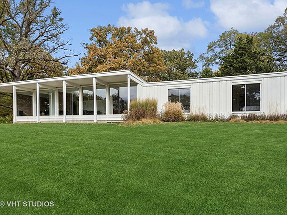 ** Multiple offers received. Highest & Best offers should be submitted no later than 12pm Noon Central Time on Monday, October 28th. ** Wow! Even among MCM homes, this beautiful 1965 mid-century modern ranch designed by John Schmidtke stands out! Sited atop a hill on what is arguably the best lot in Elgin's desirable Sherwood Oaks subdivision, this beautiful International Style modern home is both elegant and sophisticated. Walls of Chicago Common Brick are interspersed with glass and cedar to create a home that is full of light and beautiful, natural materials. A large, eat-in kitchen with dinette space features original cabinets & hardware and walls of glass on two sides, including looking into and through the sun room, with its huge sliders. Along the front of the house with its massive 100" x 100" windows, are the dining room and living room, separated by a brick fireplace, and the den, separated from the living room by a bookshelf wall. These three spaces flow beautifully from one to another, and all take advantage of the amazing wall of windows and natural light looking southwest under a significant overhang that spans the width of the window wall and offers passive solar properties. Both the hall bath and the en-suite bath in the Primary Bedroom feature their original floating cabinetry and hardware, as well as tile and some fixtures. Both the Primary and Second bedrooms face out the front of the house, across the generous front lawn overlooking all the beautiful, mature trees in the neighborhood. And the Primary bedroom includes a large walk-in closet for excellent storage. Remarkably for a modern home of this era, there's a large walk-in closet for storage on the main level, as well as a spacious laundry room, so that all day-to-day needs are met on the main level, offering true ranch living. Two additional walk-in closets on the main level offer excellent storage within easy reach as well. Take note of the fantastic architectural details in the house, such as the way the door framing is done, and you'll realize just how special this home is. A two-car garage rounds out the main level, and the home also has a partial basement for even more storage or space for a rec room or an exercise, hobby or home theater area. Outside, you'll enjoy the nearly 1-acre lot surrounded by and peppered with mature trees and offering views of nature all around. Sherwood Oaks is a hidden gem within Elgin, with its winding streets, hills, and endless natural beauty. In just 10 minutes, you can be on I-90 or at South Barrington's Arboretum area with all of its dining and shopping options. This is a wonderful example of modern architecture for the discerning buyer looking for an architect-designed home in a beautiful, quiet, natural setting at a fantastic price. Don't let this one slip away!