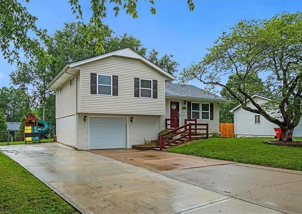 Perfect starter home! Pride of ownership shines! This traditional side-to-side split floor plan has 3 bedrooms and a bathroom on the upper level, with a living room and kitchen on the main level, then a partially finished basement, plus storage. The house features dark-stained hardwood floors, an updated kitchen with a newer oversize sink, faucet, dishwasher & tile floors, an extended double driveway, and new concrete steps/patio in the backyard. The bathroom has tile floors and shower surround, with updated faucets. The spacious backyard has plenty of room for entertaining and is fully fenced. This house is a must see!