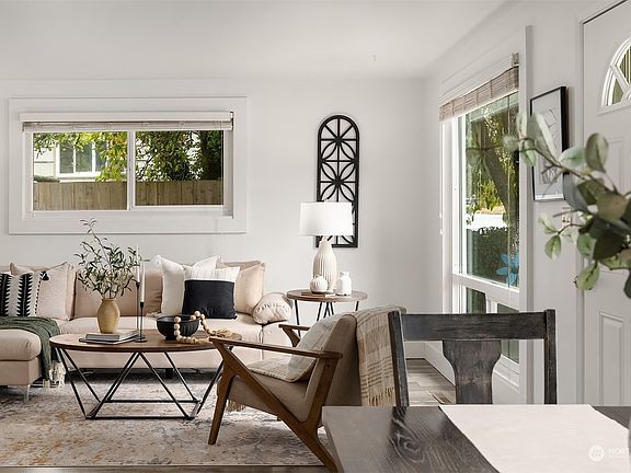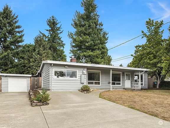 Prepare to fall in love with this cute four-bedroom rambler nestled on a spacious flat lot in a great location! Convenient one-floor living does not mean that you have to sacrifice on space. This home lives large with multiple living spaces and expansive picture windows that flood the home with natural light. Enjoy the easy maintenance laminate floors throughout as well as a fresh coat of paint. The kitchen has an adjacent slider out to the large covered patio. Lots of off-street parking, plus a detached garage provides additional storage. Amazingly convenient location: you'll appreciate the 81 walkscore which means great proximity to transit (including the upcoming light rail station!), The Commons, and lots of shopping and dining options!