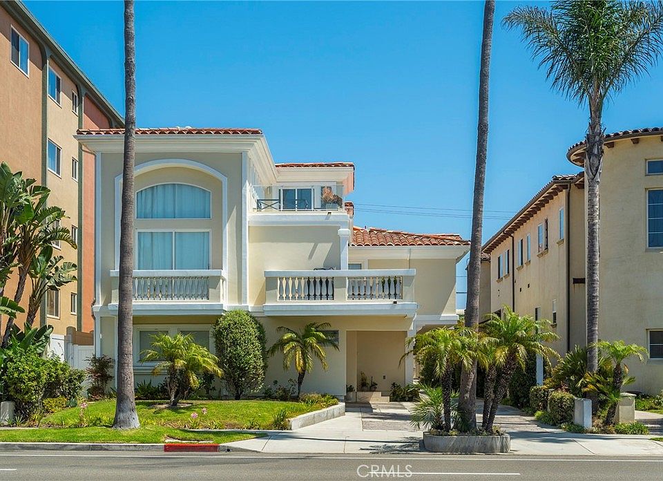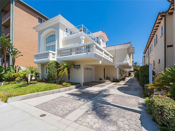 Experience the best of beachside living in this stunning three-level townhome, ideally situated on Catalina, just a block from the ocean and a short stroll to Riviera Village. Built in 1999, this front-end unit boasts a rare and exceptional floor plan. The first level features two inviting guest bedrooms, while the second floor offers a spacious primary suite with a luxurious en-suite bathroom and a bright, open living area. The top floor is home to a large, fully functional loft, perfect for a variety of uses. This beautiful Mediterranean-style townhouse also features two balconies which are generously oversized. One balcony extends from the second-floor living room, while the other, on the top floor, provides the perfect space for entertaining with breathtaking views of Palos Verdes. Impeccably maintained with stone and hybrid wood flooring and move-in ready, this home is a rare gem in an unbeatable location. You'll love living here!
