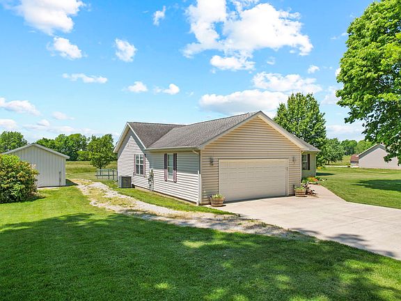 Absolutely stunning 3 bed/2 bath ranch home on almost an acre with a pole barn workshop in Hunters Glen! You'll fall in love with the open-concept floor plan, fireplace, and gorgeous hardwood floors. The primary bedroom suite is complete with a large walk-in closet and bathroom with a full tub and separate shower. The home has a brand-new HVAC system, paint, carpet, and stainless steel appliances. Enjoy the beautiful view from your covered porch or back deck. This is a MUST SEE and a home warranty is included!
