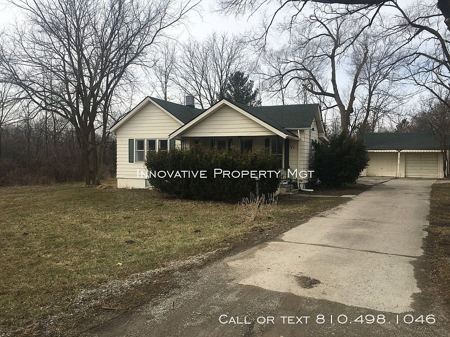 Check out this 2 bedroom ,1 bath home that has been completely refurbished! Hardwood floors throughout. Both bedrooms have neutral paint. Galley style kitchen with stove, refrigerator and plenty of cabinet space. This house has a screened in patio, covered front porch and a two car detached garage. Located right next door to Dye elementary school which is in the Carman-Ainsworth district. Flint Township water.