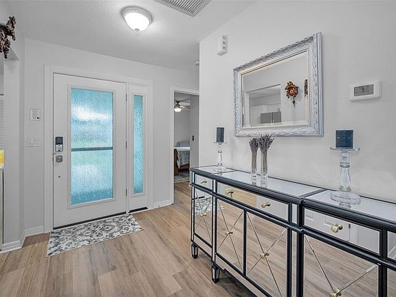 Step through the newly refinished front porch into a true stunner! This beautifully maintained home is light, bright, and full of charm. Updated and tastefully decorated, it features gorgeous vinyl flooring throughout, offering both style and durability. From the moment you enter, you'll feel right at home in this inviting, move-in-ready space. Enjoy a spacious kitchen designed to impress, featuring matching stainless steel appliances, granite countertops, wood cabinets and ample cabinet space—perfect for both everyday living and entertaining. The home features 2 bedrooms and 2 bathrooms with a 1 car attached garage. The primary bedroom and walk in closet is generously sized for convenience. The primary bathroom is beautifully appointed with modern vessel sinks and stylish accents, creating a spa-like atmosphere you'll love coming home to. With convenient access from both the living room and the primary bedroom, indoor-outdoor living has never been easier. Relax and Unwind with Serene Pond Views Step out back to a generously sized patio where you can sit and enjoy peaceful views of nature and a scenic pond—your own private retreat. ROOF (2021), NEW GUTTERS(2024), NEW PLUMBING SYSTEM(2021), WASHER & DRYER CONVEY(LOCATED IN GARAGE, 2024). The home is just steps away from the very desirable clubhouse. The best of maintenance-free living in this vibrant community offering resort-style amenities. The spacious clubhouse features inviting entertainment areas, a BBQ area perfect for gatherings, and a well-equipped fitness center. Stay active and social with a variety of activities including a heated pool, relaxing spa, tennis courts, pickleball, and shuffleboard. Live Maintenance-Free: The HOA covers lawn maintenance, sewer, trash, water, cable, and internet—giving you more time to relax and enjoy the lifestyle you deserve. Prime Location Near Beaches, Parks, and Attractions Pointe Alexis offers the perfect blend of tranquility and convenience. Ideally situated just 30 miles from Tampa International Airport and approximately 19 miles from the award-winning Clearwater Beach, this community places you near some of Florida’s best destinations. Enjoy easy access to: Sunset Beach – 2.1 miles, Fred Howard Park – 2 miles, Famous Sponge Docks – 3.3 miles, Dunedin Causeway & Beaches – 11 miles, Vibrant Downtown Dunedin – 13 miles and the highly desirable city of St. Petersburg is approximately 35 miles. Whether you're craving beach days, local dining, or scenic parks, it's all within reach at Pointe Alexis. HOME DID NOT EXPERIENCE FLOODING FROM 2024 HURRICANES!