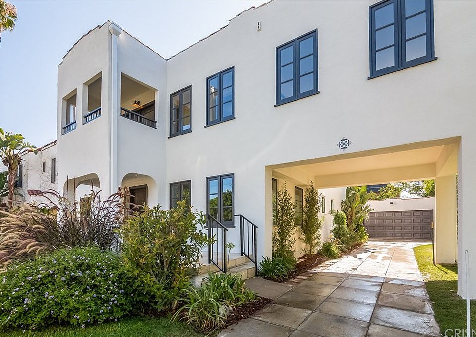 Restored Contemporary Spanish with new pool/spa located within the recently established Miracle Mile Historic Preservation Overlay Zone (HPOZ) neighborhood. The home is completely updated with a desirable floor plan most are looking for. There's an open kitchen-family room with views to the backyard deck, lawn, and pool through a wall of French doors which creates a wonderful space to entertain family and friends. The kitchen is appointed with Thermador appliances, quartz counters, mosaic backsplash, two sinks, generous cabinet storage, and center island seating. The dining area and spacious bedroom suite off the living room completes the first level. There are two bedroom suites upstairs and an additional two bedrooms that share a full bath in a Jack-and-Jill layout, all generously sized. The master suite has a large walk-in closet and beautiful bath with double sinks, stand alone soaking tub, over-sized shower, and makeup counter. There's an additional 18x11 bonus room behind the two car garage looking over the pool that would be a great office or game room. All systems are new with some eco friendly features including circulating tankless water heater, LED lighting, two zone A/C with Nest Thermostats, and solar ready 200amp electrical panel.