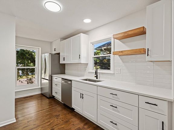 On the main floor you have beautiful refinished real hardwood floors, three large bedrooms with brand new carpet, all new bathrooms, and a fully remodeled kitchen with quartz countertops and stainless steel appliances.