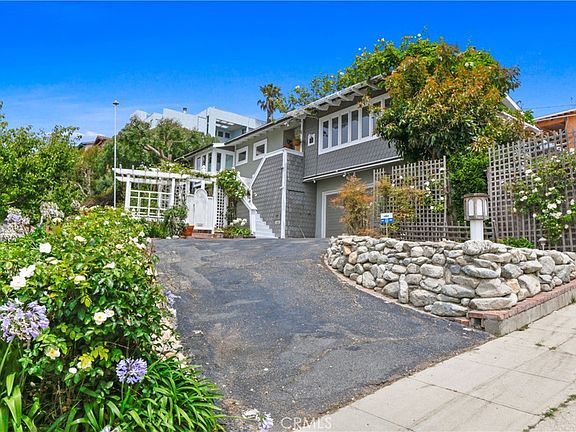 Perched atop nearly 11,000 sq ft overlooking the ocean, this captivating 1,446 sq ft San Pedro residence with 3 bedrooms and 2 baths in the prestigious Palisades neighborhood is a must-see! Begin by ascending up the driveway bordered by lush native foliage to the covered porch. Fall in love with a timelessly elegant interior showcasing exceptional craftsmanship and exquisite attention to detail, complemented by a soft palette and beautiful hardwood flooring throughout. Exposed, vaulted wood beams soar over the sunlit living room, anchored by an ornate fireplace. Expansive dual-pane windows spill abundant natural light and frame picturesque ocean and Catalina Channel views, creating a lively atmosphere for entertaining. Seamlessly connect to the adjacent dining area adorned with a sophisticated chandelier suspended under lofty ceilings. Sure to delight the avid cook, the newly remodeled chef-inspired kitchen sports high-end Cafe appliances, crisp white cabinetry, a customized backsplash, an LG double-door refrigerator, custom made kitchen cabinetry 6-stacked drawers, a barn sink, and sleek quartz countertops. Three stylish and versatile retreats offer a scenic escape, two with high ceilings and French doors to the brick patio. A splendidly updated, shared bath with a stunning vanity and an open stone-clad shower caters to guests. The delightful primary suite is a haven all of its own, featuring a seaward window-seat nook with ocean views and a chic ensuite with a walk-in shower tub. Your oasis-inspired backyard is a secluded paradise filled with various perennials, shrubs, grapevines, and trees like orange, Hass avocado, dwarf lime, pear, and California pepper. Hold weekend BBQs or alfresco meals on the covered patio, made easy with the outdoor kitchenette. Explore multiple sitting alcoves scattered around the wrap-around, tri-tiered garden, strategically placed for magnificent ocean views. Notables include the paid-off solar, convenient laundry area with built-ins, tailor-made bar corner, and an attached 2-car garage. Enjoy proximity to Cabrillo Beach, Point Fermin Park, LA Harbor, the Korean Friendship Bell, and Ports O'Call Village. Come make this rare gem yours before it’s gone for good!