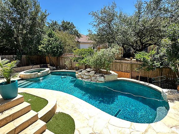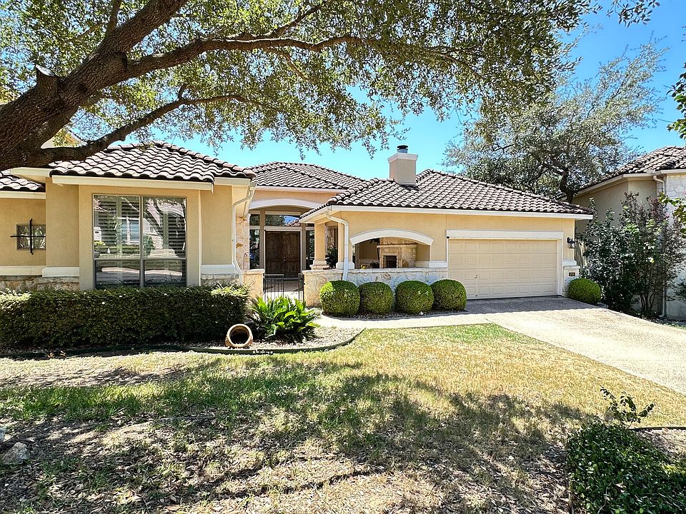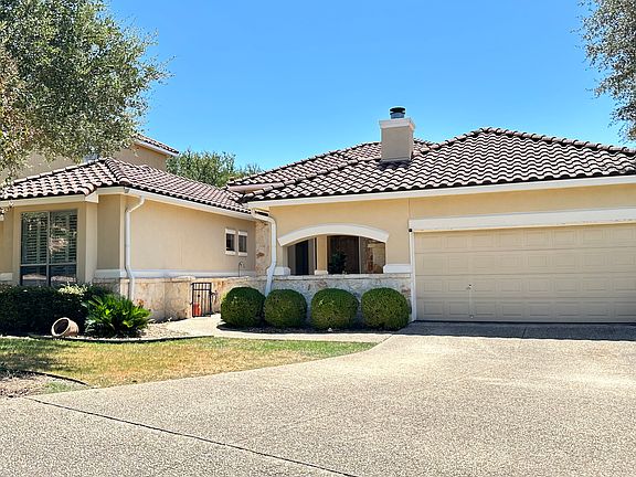 Welcome to your Mediterranean inspired sanctuary in the heart of San Antonio! This beautifully designed 3 bedroom, 2.5 bathroom home offers a luxurious blend of comfort, elegance, and lifestyle. From the moment you enter through the charming gated courtyard, you're greeted with a warm, villa like ambiance that continues throughout the home. Step inside to an open concept layout that flows effortlessly between living, dining, and kitchen spaces, perfect for both intimate gatherings and grand entertaining. Soaring ceilings and abundant natural light pour in through expansive windows, highlighting the home's architectural details and creating a bright, airy atmosphere. The Mediterranean tile roof and thoughtfully selected finishes add timeless charm, while the gourmet kitchen and spacious living areas offer all the modern comforts you desire. Outdoors, enjoy your private resort style pool ideal for cooling off on warm Texas days or unwind in your serene front courtyard, perfect for morning coffee or evening wine. Situated in a premier community with access to one of San Antonio's top-tier golf clubs, you'll enjoy exclusive privileges and resort style amenities, including a pool, sports courts, walking trails, and more. Whether you're a golf enthusiast or simply seeking a refined lifestyle with unmatched amenities, this home offers an extraordinary opportunity to live, relax, and entertain in one of the city's most sought after neighborhoods.