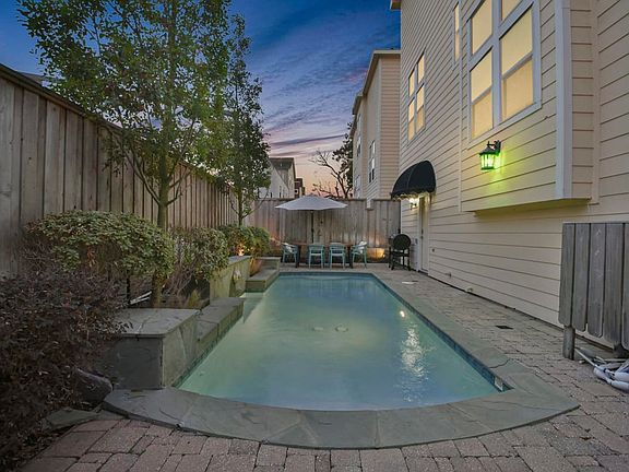 Welcome to The Heights, a luxurious retreat perfect for both quick weekend getaways and extended stays. Nestled in a vibrant neighborhood, this home offers easy access to restaurants, cafes, and bars, all just a short walk or bike ride away. The private backyard is a haven of relaxation, featuring a tranquil pool surrounded by lush landscaping, lounge chairs, and an outdoor dining area with a charcoal grill, ideal for barbecues and gatherings.