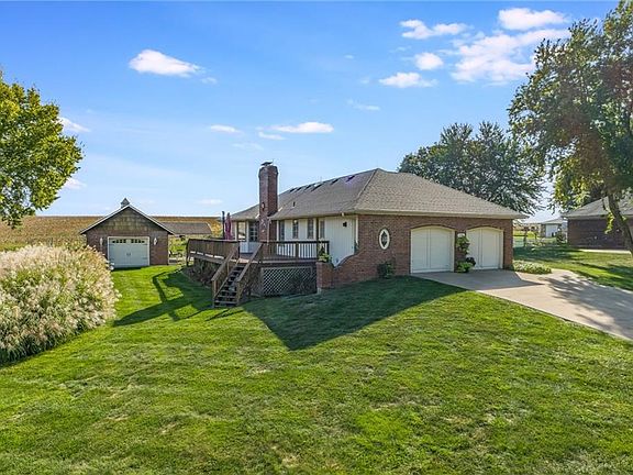 WHAT A GEM! This all brick, ranch home is nestled back in a quiet, well-established neighborhood that backs up to farm ground. Enjoy the convenience of town with country in your backyard. This custom home was built with precision! Built in 1981, it has only had two previous owners and has been meticulously cared for. The beautiful brick carriage house with covered patio is a HUGE bonus! It can serve as another garage or be turned into separate living quarters. The possibilities are endless! The home offers 2 bedrooms and 3 1/2 baths with a full basement. The extra-large master suite includes two oversized closets and a full bathroom with separate vanities. The basement is set up with a bedroom/office/rec room combo, a full bathroom with walk-in tiled shower, and walk-in cedar closet. There is approximately 1300 sq. ft. of unfinished storage space with built-in shelving. Leave it as a storage area or finish it for more living space if needed! The stained glass, french doors, and plantation shutters are a few features that add to the character throughout this home. They say that the kitchen is the heart of the home. This spacious kitchen with cozy sitting area and fireplace is a space you won't want to leave! Off the kitchen is a huge deck, built in 2016, that adds additional entertaining space or a space to just relax and unwind. With all this home has to offer as well as updated electrical, all copper plumbing, new roof in 2017.....you don't want to miss this!!