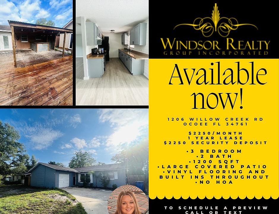 This 1200 square foot single family home has 3 bedrooms and 2.0 bathrooms. This home is located at 1206 Willow Creek Rd, Ocoee, FL 34761.