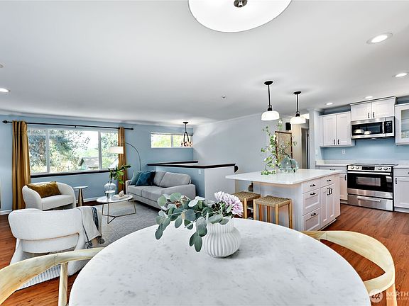 A central island gem! Located on a quiet, dead-end street, near an abundance of trails, this home is beautifully updated and on a spacious, flat, .35 acre lot. The main floor boasts two bedrooms, a large living room with picture window, a dining area that opens onto an entertaining deck, and a beautifully appointed kitchen with a huge island. The lower level is freshly carpeted and has one bedroom plus an office/den and a bonus/family room, as well as a laundry area. A slider leads you to the back patio and backyard. Beautiful, mature landscaping surrounds the home. Don't miss the rooftop deck! Heat pump for efficient A/C. Quick access to H305 and only 10 mins to ferry and downtown shopping. Come tour today and make this home yours!