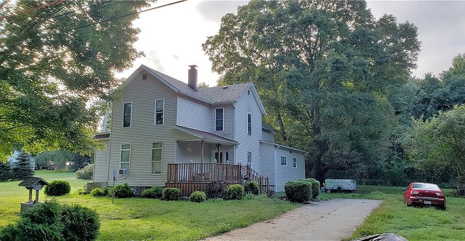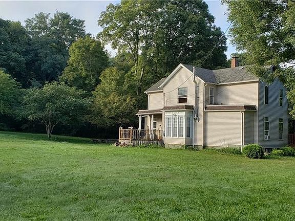 Potential galore!! Large eat in kitchen w/ceramic flooring, newer appliances, 1st floor laundry w/stackable washer/dryer, pellet stove in dining area, woodstove in LR, hardwood in LR, foyer, master bedroom. Lrg room up was used as family room. Abundant closets. Lrg upper bath with soaker tub. Gas well (ask agent for specifics), front and back decks. Will be a beautiful home with some TLC. Sold AS-IS. Heat is FA gas. Woodstove & pellet stove for supplement or main heat.