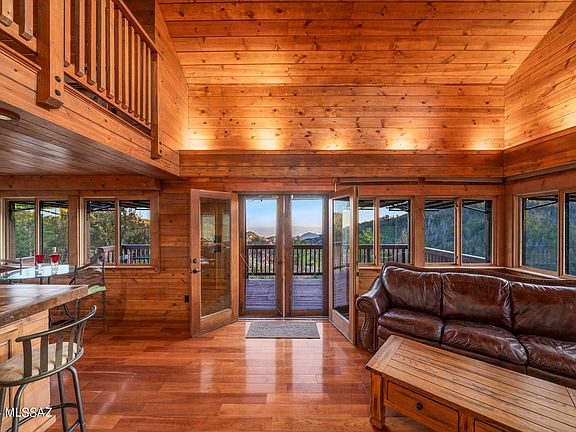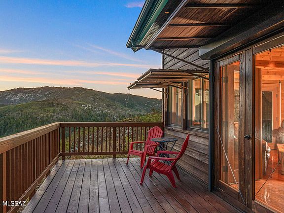 Escape to your own mountain paradise with this newer, modern cabin built in 2009! Fully furnished with unobstructed views of Tucson's city lights! Spacious deck, perfectly situated on a private quiet lot overlooking Sabino Canyon! Experience the refreshing coolness as you bask in the beauty of the Coronado National Forest with endless mountain views! This charming four-season cabin is ideal for nature lovers & adventure seekers! Features a stunning stone gas fireplace that wraps around into the kitchen and extends into the two cozy open loft bedrooms! The versatile downstairs bedroom can easily double as a home office, offering a serene workspace with inspiring views! The downstairs bathroom offers a large soaking tub! With expansive windows throughout the living area and kitchen, you'll be treated to panoramic views of the city & majestic mountain tops! Additional features include an energy efficient heat pump & air conditioning, dishwasher, 1200-gallon underground water cistern & emergency generator! This is more than just a cabin; it's a tranquil retreat from the hustle and heat of the city, a perfect sanctuary for those seeking solace in nature. Don't miss this opportunity to own a slice of heaven on Mt. Lemmon! Call today for your private showing!