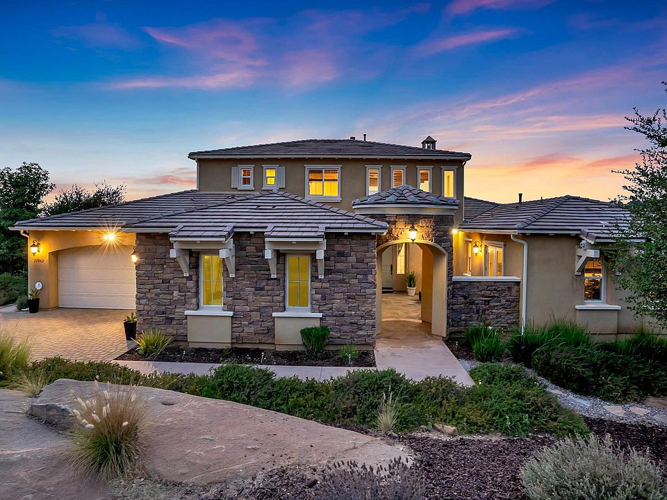 Welcome Home to this exquisite estate situated in the beautiful Trevi Hills Gated Community. This former model home features Chef's Kitchen with huge center island and open to the family room. The master suite is fit for a king on the 1st floor with his & her vanity & walk-in closets and open to the backyard. Perfect for entertaining backyard includes sparkling pool/spa with vanishing edge, flagstone patio, Fire Pit, Orchard & Paid for SOLAR. Enjoy sipping on your very own wine from your vineyard.