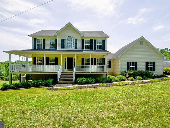 Wonderful and spacious 5 bedroom, 3.5 bath colonial with side loading 2 car garage in Culpeper county on a tranquil 1.4 acres encircled by majestic trees for ultimate privacy; yet just a few miles outside of town in beautiful Boston! Enjoy the views and wildlife on the large covered wrap around front porch. An open 2 story foyer welcomes you and ushers you into the formal living room with twin windows and plush carpeting. Opposite the formal dining room offers space for all occasions. The large open kitchen is sure to please with loads of counter space, an abundance of 42-inch cabinetry and a peninsula with bar seating. The sundrenched breakfast room has a bay of windows and glass paned door granting access to the deck overlooking a lush grassy yard and woodlands beyond; perfect for entertaining family and friends! Relax and unwind in the adjoining family room with a cozy gas fireplace. A large laundry room/mud room with utility sink and powder room round out the main level. The upper level features 4 generous sized bedrooms. The master bedroom suite has his and her closets, and luxury bath with dual vanities, separate shower and soaking tub. The recently finished lower level offers plenty of space for games, media and more with a family room, 5th bedroom, study, full bath and large bonus room/workshop! Brand new HVAC in 2018 and hot water heater in 2017. This home is the perfect oasis!