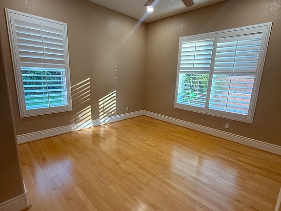 Garage fridgeTwo-car garageKitchen fridgeHardwood floorLarge primary bedroomsShutters on most windowsCeiling fans