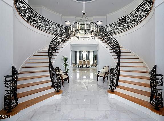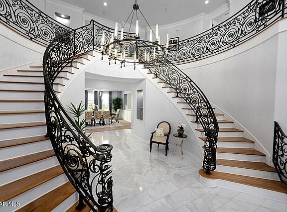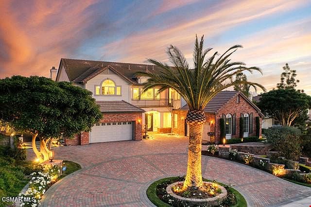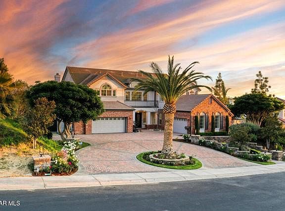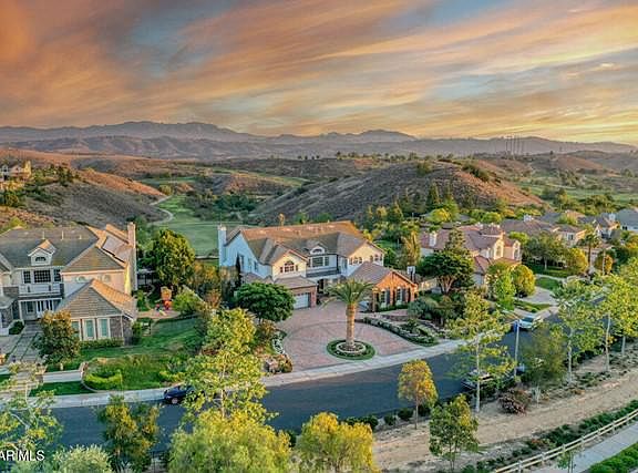 Stunning, one of a kind, elegant contemporary home in the coveted Country Club Estates! Located above the 10th hole of the Moorpark county club golf-course, this home, which boasts some of the best views in the area including of the Malibu mountains and of the coast on a clear day, in the last couple of years, it has been extensively remodeled by the current owners. This home offers approximately 5,851 square feet of spacious luxury living with a dramatic foyer, a great room that has a gourmet kitchen, family dining area and family room, a formal living room, formal dining room, a large master oasis with an additional sitting room, 2 oversized walk in closets and Ensuite, 4 additional Ensuite bedrooms and an office. No detail was overlooked in this remodel from the installation of European white oak hardwood and Biarritz polished white marble flooring throughout; to the remodeled and updated chef's kitchen with a single-slab oversized granite island, custom high-end cabinetry with elegant hardware, quartz countertops and a mosaic marble backsplash; the structural installation of custom 20 foot long by 9 foot tall stackable panoramic doors and a Napolean cool to the touch 6 foot linear fireplace surrounded by stunning stacked marble in the family room making the great room an entertainer's dream; the installation of French doors leading to the backyard in the formal living room, the remodel of the designer spa like master suite with luxury marble materials, custom oversized shower and freestanding 73 inch Duravit Cape Cod soaker tub and secondary bathrooms with luxurious, high end tile in the showers/bathtubs, grohe fixtures, unframed glass shower doors and quality finishes; to the installation of lighting throughout the house with over 100 recessed lights and stunning light fixtures, wood shutters, new interior doors and hardware, custom closets and a state of the art Klipsch/Sonos centralized AV system with overhead speakers to name a few! In addition, the large four car garage has been remodeled to install epoxy flooring for parking, while half of the space has been converted to a home fitness space, including a professionally installed gym floor. The garage also has built in New Age Bold series 3.0 bamboo top cabinets for all of your storage needs. Both the interior and exterior of the home have been refinished and painted and extensive landscaping has been undertaken. From the backyard you can enjoy the panorama from the patio or play basketball from the new professionally installed half court. In addition, a double retaining wall over 100 feet long was built and over 20 mature fruit trees and a vegetable garden were planted, complete with irrigation systems, landscape lighting and spotlights on all the trees. 7 queen palms were professionally installed in the backyard as well as a majestic canary palm graces the front of the home. All exterior lighting fixtures were replaced and side yards remodeled. Don't miss out on your opportunity to own this gorgeous home in Moorpark.