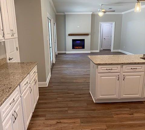 Custom home with 9' ceilings in main living area and crown moulding throughout. 4 bedrooms with 3 full bathrooms. Full size side entrance 2 car garage with opener. Separate tile shower in the primary bathroom. Brick exterior with Hardi trim. Soft close cabinets with granite countertops. 2'' window blinds with cased window trim. His and hers closets in the primary bedroom. Walk-in Panrty.