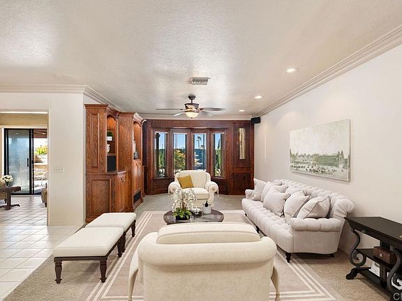 Welcome to your ideal home in the coveted 55 plus community of Seven Oaks (Ranch Bernardo). This beautifully updated single-level residence boasts charm from the moment you arrive. Located on a tranquil, low-traffic street, the curb appeal is undeniable, with stylish facade and mature landscaping welcoming you home. Step inside to discover a meticulously maintained interior featuring crown molding and Andersen casement windows throughout, creating an inviting ambiance. The open floorplan lends itself to a great room feel, perfect for entertaining or simply relaxing in comfort. The raised large 7,000 sq/ft lot offers stunning horizon views while still providing ample privacy. The expansive backyard is a true oasis, featuring a large, covered patio and low maintenance mature landscaping, beckoning you to unwind and soak in the picturesque scenery. Convenience is key in this prime location, just a few blocks away from the Seven Oaks Community Center. Prepare to indulge in resort-like amenities including a spacious library, sparkling swimming pool, pickleball courts, a sprawling auditorium/meeting hall, fully equipped workout facility, and recreational options like billiards, ping-pong, woodshop, ceramics room, shuffleboard, and more. Engage in a plethora of activities and classes, from the Woodworking Club to the Gardening Club, Bunco nights, and beyond. Beyond the community borders, you'll find yourself conveniently close to shopping, dining, and the I-15 Freeway, ensuring easy access to all your needs and desires. In summary, this home offers the perfect blend of comfort, style, and community amenities for a vibrant 55+ lifestyle.