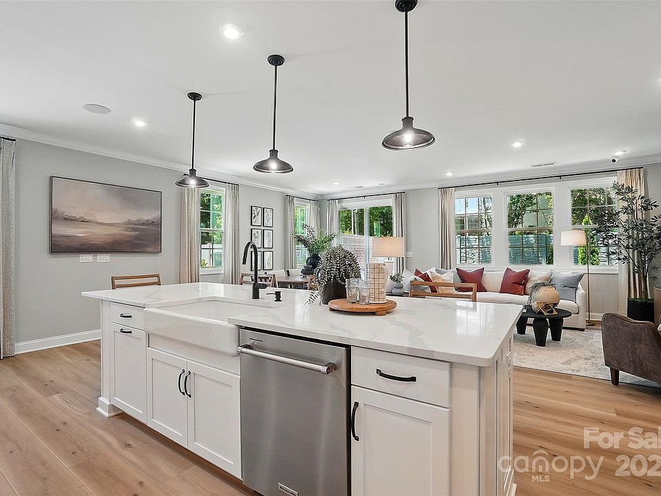New Luxury Brick townhome in prime Ballantyne residential location! The Caswell floor plan is spacious, functional and well appointed. Upon entering, you notice elegant features in the foyer including a Tray Ceiling and ext. Millwork. The large open living area features wide plank flooring, a Gourmet Kitchen with huge island, Kit.Aid appliances, 42" White cabinets w/soft close, pull-out shelves,