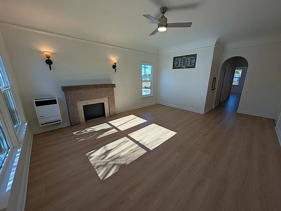 Charming Upper Level 1 Bed and 1 Bath Apartment with Hardwood Laminate Floors and Plenty of Natural Light. The Living Room has a Ceiling Fan, Wall Heater and Decorative Fireplace. Kitchen with White Cabinetry, Warm Tiled Countertops, Large Stainless Steel Single Basin Sink with Garbage Disposal and Stainless Steel Appliances: Refrigerator, Gas Stove and Dishwasher. Washer and Dryer in the Unit. Bedroom with a Closet, Ceiling Fan and a Wall AC Unit. In the Bathroom there is a Bathtub with Shower Rod, Vanity Cabinet with Porcelain Sink and Modern Wall Mirror. Modern LED Light Fixtures. Hardwood Floors Throughout. One Parking Space Included. Tenant Pays All Utilities Including Prorated Water and Trash (Rubs).1 Parking SpotTenant Pays All Utilities.