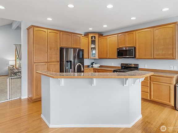 Enjoy breathtaking sunset views from this expansive 3,748 sq ft home! Offering 5 bedrooms and 3.75 baths, including a main-level bedroom and bath ideal for guests or multigenerational living. Upstairs features 4 bedrooms and 2 full baths. The finished basement includes vaulted ceilings, a kitchenette, 3/4 bath, 2 bonus rooms, and abundant storage. New carpet and newer appliances enhance the comfortable, flexible layout. Whether you're entertaining or relaxing, this home has space for it all. Don’t miss your opportunity—schedule a private showing today!