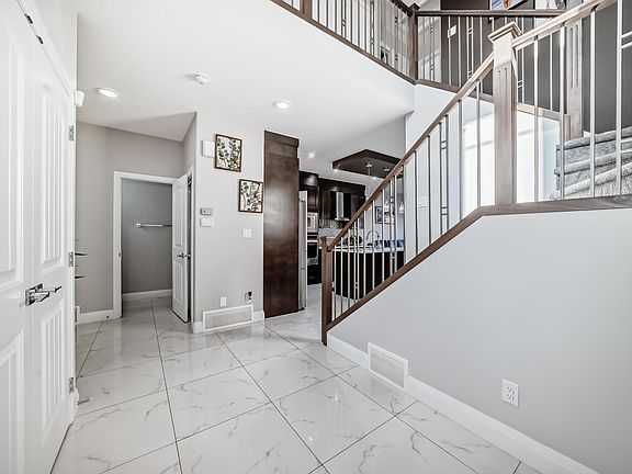 Welcome to this beautiful 1,734 sq. ft. 2-storey home in the desirable community of Laurel! Built in 2020 on a spacious west-facing pie lot, this property offers style, function, and an unbeatable location—just steps from Svend Hansen School, close to Meadows Rec Centre, and quick access to the Anthony Henday. Step inside to a grand open-to-above entryway, soaring 9 ft ceilings on every floor, and large triple-pane windows that flood the home with natural light. The main floor features a cozy living room with wall-mounted fireplace, a stylish dining area, and a modern chef’s kitchen with gas cooktop, and stainless steel built-in appliances. Upstairs you’ll find 3 spacious bedrooms plus a bonus room, along with 2 full bathrooms, including a relaxing primary suite. Additional highlights include a separate side entrance to the basement for future potential, custom blinds, and a deck ready for entertaining. This move-in ready home blends modern design perfect for families and professionals alike!