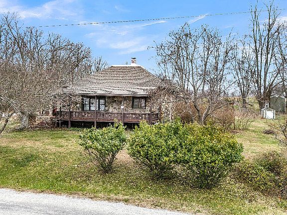Great Location!!!Exceptional native stone 3 bedroom 2 bath home on 1.58 close-to-town acres. Built in 1910 and recently modernized, this home looks great inside and out and offers loads of neat features, including stained glass windows, French doors, a library with built-in book cases, large covered front porch and much more. Hardwood floors throughout except for the tile in the office and bathrooms. Spacious kitchen with gorgeous hickory cabinets and bar. Sunroom with stone fireplace. Park-like yard with rock walkways and established flower gardens, shrubs, trees and herbals. Inviting 18x30 patio and Horseshoe pit. Area for a vegetable garden. 8x10 garden shed and a fully electric finished shed. 24x36 detached 2 car garage with workshop and 2 room partially finished loft currently used for storage and hobbies. Electric, City water and Natural Gas in use at property. This home has a lot of character indoors and out. Abundant wildlife includes deer and a large variety of birds. Mature elderberry bushes as well as many other herbal plants for your gardening delight. It is on a quiet road not far from town and has wonderful views in all directions. Quiet setting and relaxing atmosphere both inside and out.