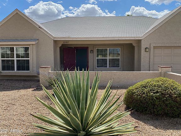 This home features 4 bedrooms & 2.5 bathrooms and NO HOA! Freshly painted. Dual-pane windows throughout * Very Energy Efficient. You enter the home & you're greeted with a vaulted ceiling that soars above the living-room & the dine in kitchen. Wonderfully designed kitchen with side-by-side refrigerator/freezer, abundant cabinets, black oven/range and dishwasher. Huge walk-in pantry with inside laundry with washer & dryer hooked-ups. Great counter tops and lots of natural light. The main HVAC unit is approx. 3 years old. The X-large main bedroom has a large walk-in closet & the adjoining bathroom was recently updated with a new shower/tub enclosure. Beautiful grass backyard & easy care landscaping. * Best of all there is an enclosed Arizona-room with a separate & highly efficient HVAC...