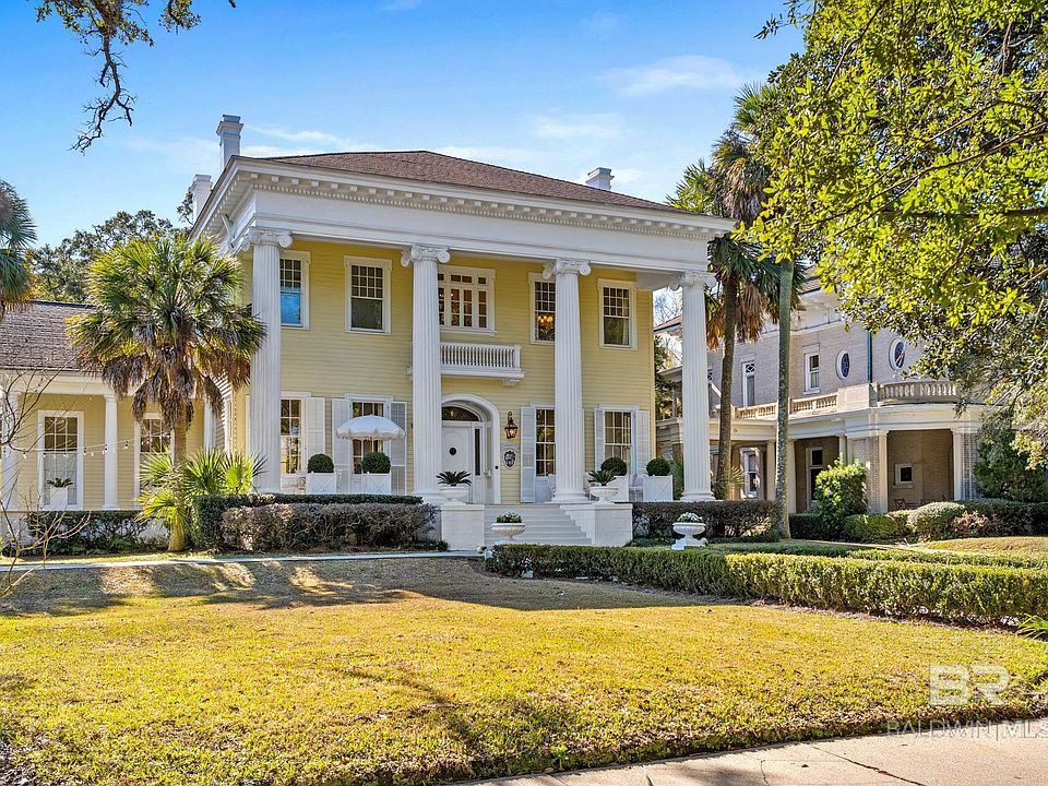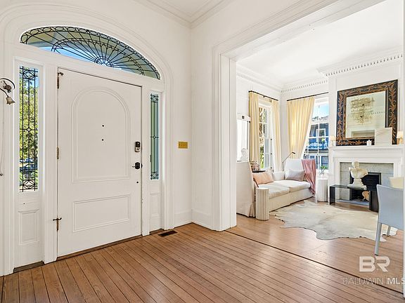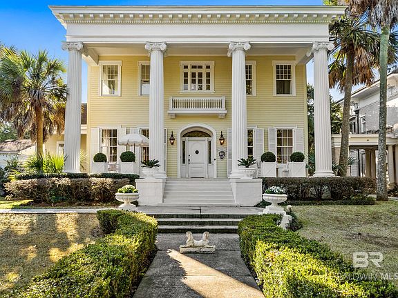 The Rapier House, nestled in the highly sought-after Oakleigh Garden Historic District and dating back to its original construction in 1885, is a stunning residence with a rich history and an array of luxurious features that have garnered widespread recognition. Notably, its prominence has been highlighted in various media publications such as Southern Living Magazine, Mobile Bay Magazine, and an upcoming issue of Frederic Magazine.This magnificent 5-bedroom, 4-bathroom home exudes grandeur from the moment you enter its impressive central hallway, flanked by double parlors on either side and a formal dining room. The generously sized kitchen boasts a large island for added storage convenience, with an adjacent spacious 12 x 10 Butler's pantry leading to a sizable covered back porch. Intricate moldings throughout the home contribute to its charm and elegance, complemented by marble and carved fireplaces scattered throughout the house. Additional living spaces include an upstairs landing adorned with built-in shelves, a 10 x 23 sleeping porch for relaxation, and a trunk room on the second level providing extra storage capacity. The property offers practicality alongside luxury, featuring a double garage with additional storage space, as well as a detached building that harmonizes with the architectural style of the main residence. A sport court for pickleball or basketball adds recreational opportunities. However, the standout feature of the outdoor space is undoubtedly the saltwater pool, complete with built-in fountains, serving as a breathtaking focal point in the backyard.Modern amenities ensure comfort and efficiency, with the inclusion of a standby generator, a tankless hot water heater, and multiple HVAC systems. In summary, the Rapier House epitomizes Overall, the Rapier House stands as a testament to timeless elegance, blending historic charm with contemporary conveniences to offer a truly luxurious living experience.