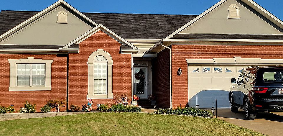 Three bedroom, two bath home located in a great area of Jacksonville, Alabama. Close to Kittie Stone Elementary, Jacksonville High School & a short 2 miles to Jacksonville State Univ. Sidewalks & Chief Ladiga Trail close by. Original wood deck complimented by added 23x12 sf. concrete patio in 2025. Roofed in 2022, New Trane H/A 2024, Upgraded attic insulation 2023 (including garage), added covers over entrance doors 2024, Storm doors added 2024, heavy-duty storage shelving added in 2 car garage. Low utilities. Gas heat, water & vented fireplace. New dishwasher 2025. Added tile floors in kitchen, Laundry room & hall bath, 2023. All blinds, ceiling fans, fixtures included. Mounted 65" TV over fireplace & Side-by-side Frig stainless steel w/ice maker negotiable. Fruit trees, muscadine & grape vines. Best sunsets in Jacksonville!