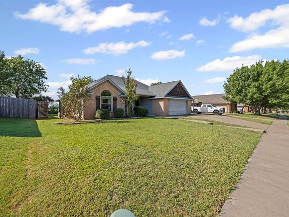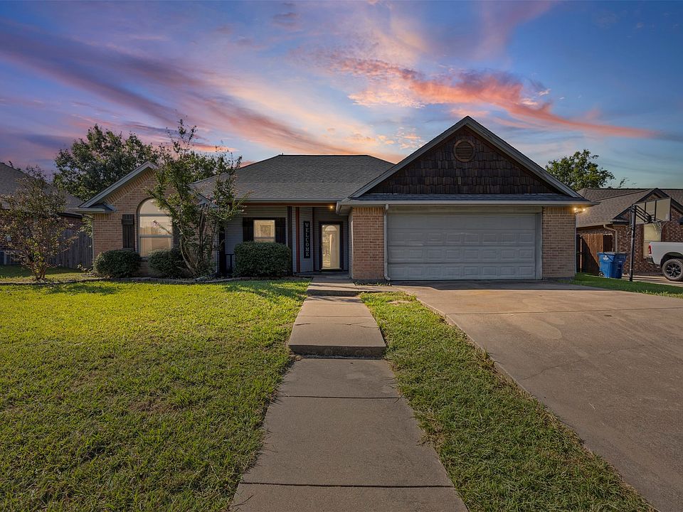 Located in a quiet, well-established neighborhood, this home is the perfect blend of modern charm and country living. The open concept living space offers a welcoming layout with hardwood floors and a gas log fireplace. The two built-in corner shelves add a custom touch, perfect for displaying books, keepsakes, or curated décor. The eat-in kitchen offers a clean, functional layout with beautiful quartz countertops and abundant cabinets for storage and everyday convenience. Tile flooring provides durability and easy maintenance, while the open flow keeps the space connected to the living area making it ideal for entertaining. The split-bedroom layout ensures privacy and comfort. The primary bedroom has an ensuite bath with a double vanity, garden tub, separate shower, and a large walk-in closet. Positioned along their own hallway, the secondary bedrooms provide ample room and easy access to a shared full bath. The covered patio and deck extend your living space outdoors. Whether sipping your morning coffee, reading a book, or watching the kids play, there’s room to enjoy the view and fresh air. While located near schools, shopping, and dining, recreation is a short 2 minute drive away to Rotary Park at Old City Lake. This park has a one-mile walking trail that loops around the lake, as well as a splashpad and playground, pickleball and basketball on outdoor courts, baseball on the baseball diamonds or get in a workout on the National Fitness Court. Come see what makes this home truly special and schedule your showing today!