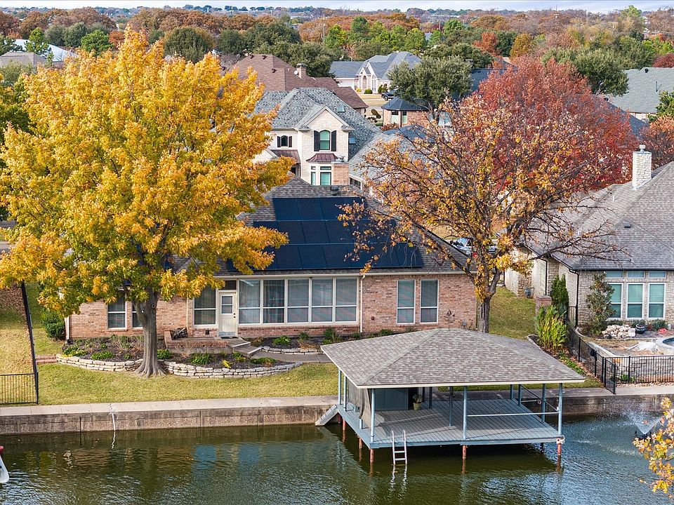 Free Electricity Bills! Wow! Discover lakeside living at its finest in this exceptional one-story brick home nestled in Granbury, TX. Boasting a smart layout that spans 2,454 square feet, this residence offers four cozy bedrooms and two well-appointed bathrooms. The primary bedroom, split from the others for privacy, features access to the serene outdoor spaces. Step into the heart of the home via an open kitchen, complete with stainless steel appliances, custom white cabinetry, and a large island equipped with a secondary sink — perfect for those who love to entertain or simply enjoy culinary adventures. Adjacent to the kitchen, you’ll find a convenient utility room with its own sink and ample cabinetry. The enclosed back patio provides an additional space for gatherings, while large windows throughout the home flood the spaces with natural light. Outdoors, the meticulously maintained landscape surrounds a transformed boat dock, now a relaxing lounging deck overlooking the lake. The dock is very easy to revert back to a boat dock, it promises endless water fun. Plus, fully paid-off solar panels transfer with the home, these panels provide almost ZERO electric bills!