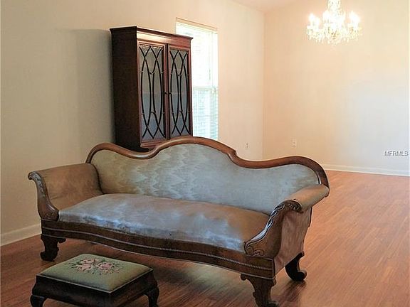 Right from the driveway you'll know you've found a jewel! Walk to the front porch, through the attractive front door, into the spacious foyer that opens to the generous formal areas, and you'll continue to be impressed! From the foyer enter the over-sized family room and be greeted by an expansive natural rock fireplace. The kitchen opens to the family room so you get to enjoy the beauty of the abundant striking wood cabinets and granite counter tops right away. The dining area features a built in hutch. Laundry room is spacious w/wash tub, directly off the kitchen for convenience.There is also a closet pantry adding even more storage. Master suite is large and features walk in closets and a bath that is sure to please, boasting dual sinks, a walk in shower and a lovely garden tub. Enjoy the privacy of a split BR plan. The beautifully floored sizable screened lanai is directly off of the family room looking out onto HUGE back yard which has a drive through gate, sharp looking vinyl fencing along three sides, and a 1200 sq ft metal 4 car garage w/electric. Half the garage has been partitioned into two rooms (walls could be removed) So it's already set up for an office, man cave, and/or exercise room. This move in ready home has an AC unit approx. 2 years old and newer insulated hurricane windows. Most homes in the area are on a 1/2 acre or more so you have in town convenience with a non subdivision feel. All this PLUS the owner is offering a Home Warranty! Call before this one is gone.